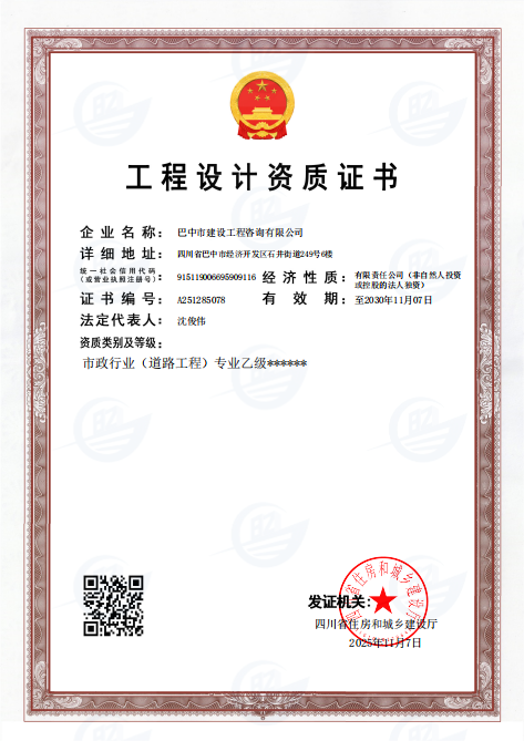 子公司工程咨询公司同步斩获省住建厅颁发的市政行业(道路工程)工程设计专业乙级资质,成功叩开市政工程设计领域大门。
