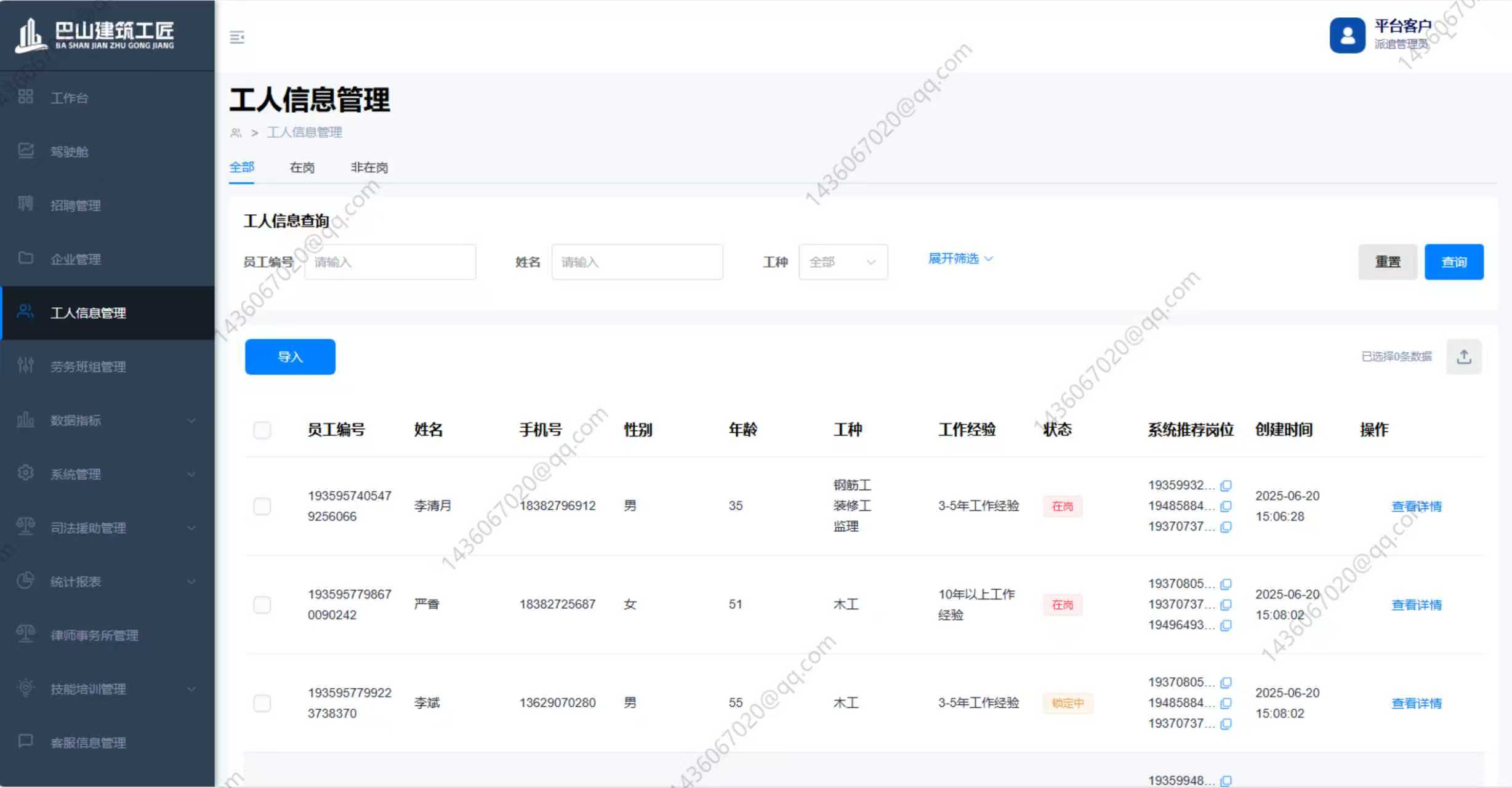 作为劳务输出大市,巴中市2024年劳务从业人员105万余人中,建筑劳务人员超40万人。但长期以来,劳务市场存在信息不对称、用工不规范、权益保障难等问题,全市建筑企业及劳务公司面临“用工荒”与“求职难”并存的困境。“巴山建筑工匠”正是瞄准这一矛盾,通过集成管理人才、建筑工人、学员培训、从业状态等数据库资源,构建起覆盖